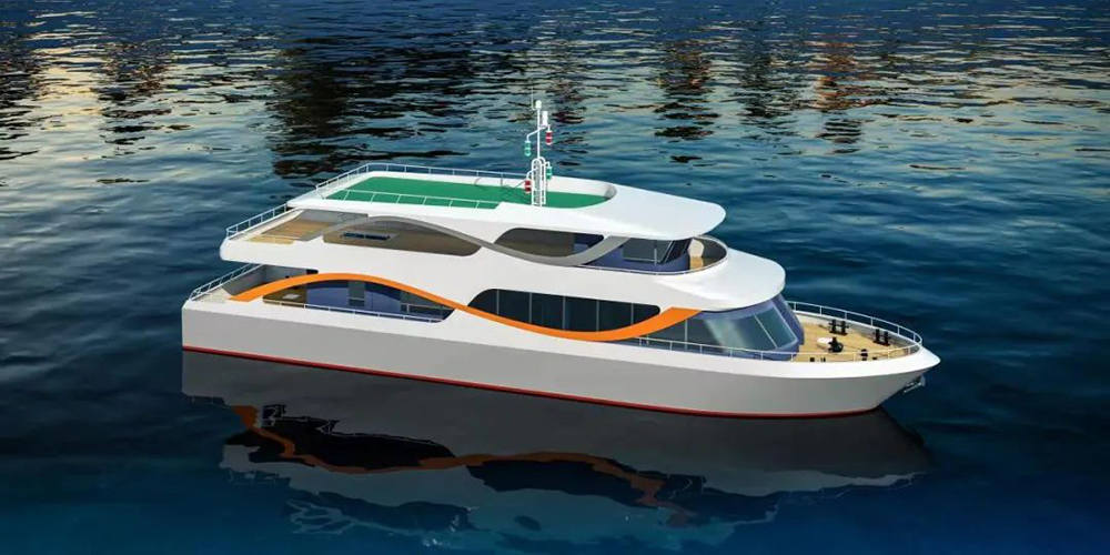 該電動(dòng)客船,總長(zhǎng)26.8米,型寬5.9米,型深2米,設(shè)計(jì)吃水1.0米,載客50人,入CCS船級(jí),授予綠色船舶附加標(biāo)志。整個(gè)系統(tǒng)配置共接入2組301kWh鋰電池組,經(jīng)過(guò)賽思億集中式的直流配電柜在直流母線進(jìn)行并網(wǎng),驅(qū)動(dòng)2臺(tái)60kW主推電機(jī)。其中直流變頻電控系統(tǒng)核心設(shè)備采用賽思億自主知識(shí)產(chǎn)權(quán)產(chǎn)品。