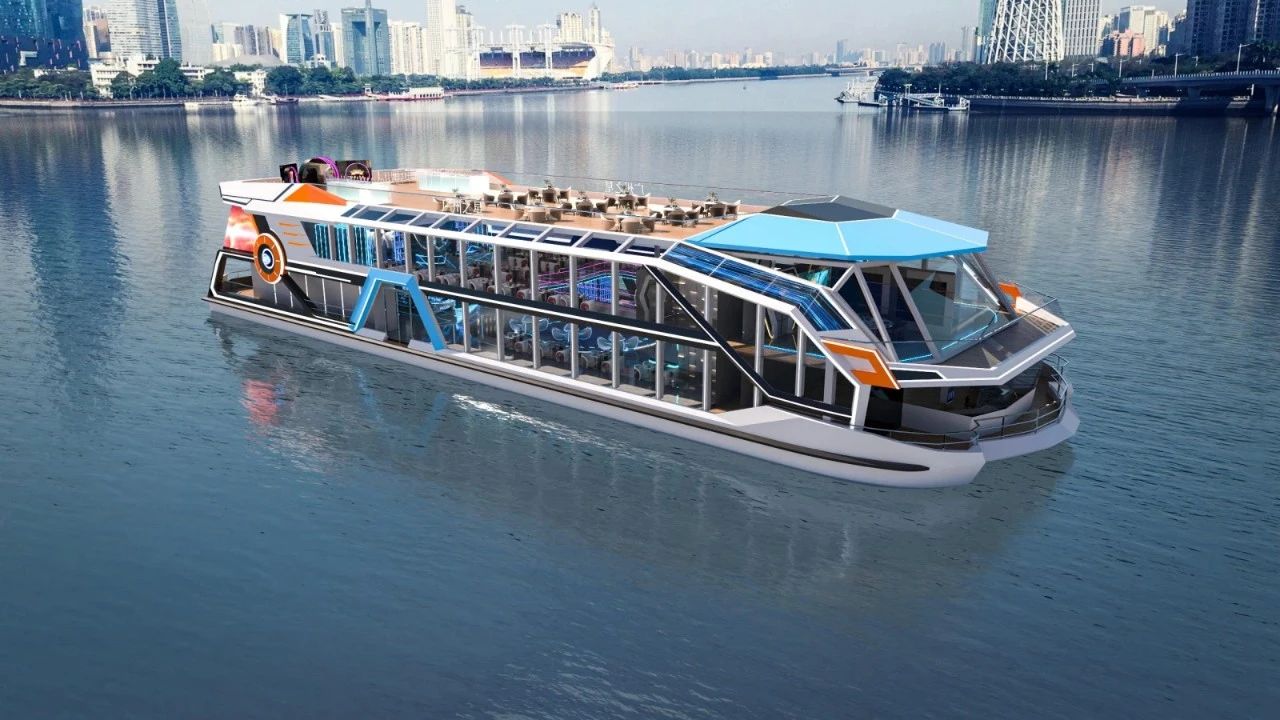 由中國船舶集團(tuán)第六〇五研究院設(shè)計(jì)、英輝南方造船(廣州番禺)有限公司為廣州之星游輪有限公司建造的428客位“珠江夜游”新能源觀光游覽船開工建造。該船是廣州首艘采用3D全息投影技術(shù)呈現(xiàn)多元化外觀造型的游覽船,該船建成后將投入“珠江夜游”營運(yùn),為珠江夜游帶來全新體驗(yàn)。