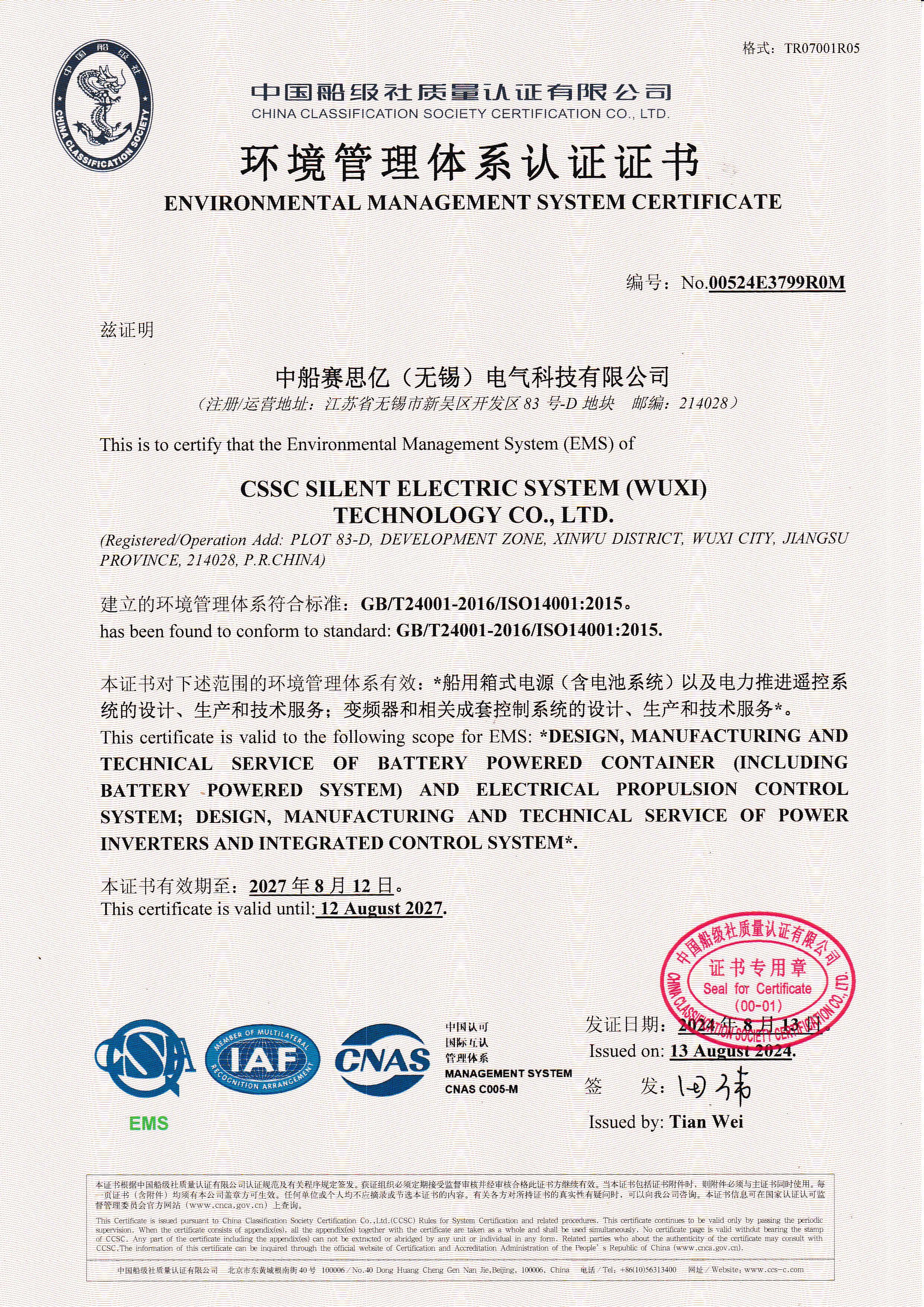 環(huán)境管理體系認(rèn)證證書